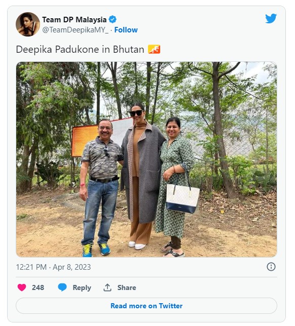 कई मीडिया रिपोर्टों ने बताया कि अभिनेत्री अपने परिवार के साथ भूटान की यात्रा कर रही थी, लेकिन उनके अभिनेता-पति रणवीर सिंह या उनकी व्यवसायी-बहन अनीशा या माता-पिता – प्रकाश और उज्जला पादुकोण कोई भी उनके साथ दिखाई नहीं दिए.