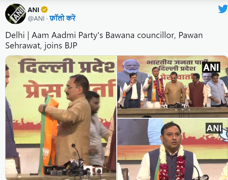 पवन सहरावत बवाना वार्ड-30 से आम आदमी पार्टी के पार्षद चुने गए। शुक्रवार को दिल्ली बीजेपी के कार्यकारी अध्यक्ष वीरेंद्र सचदेवा की मौजूदगी में पवन सहरावत ने बीजेपी की सदस्यता ग्रहण की। मीडिया से बात करते हुए पार्षद पवन सहरावत ने आम आदमी पार्टी पर कई गंभीर आरोप भी लगाए हैं।