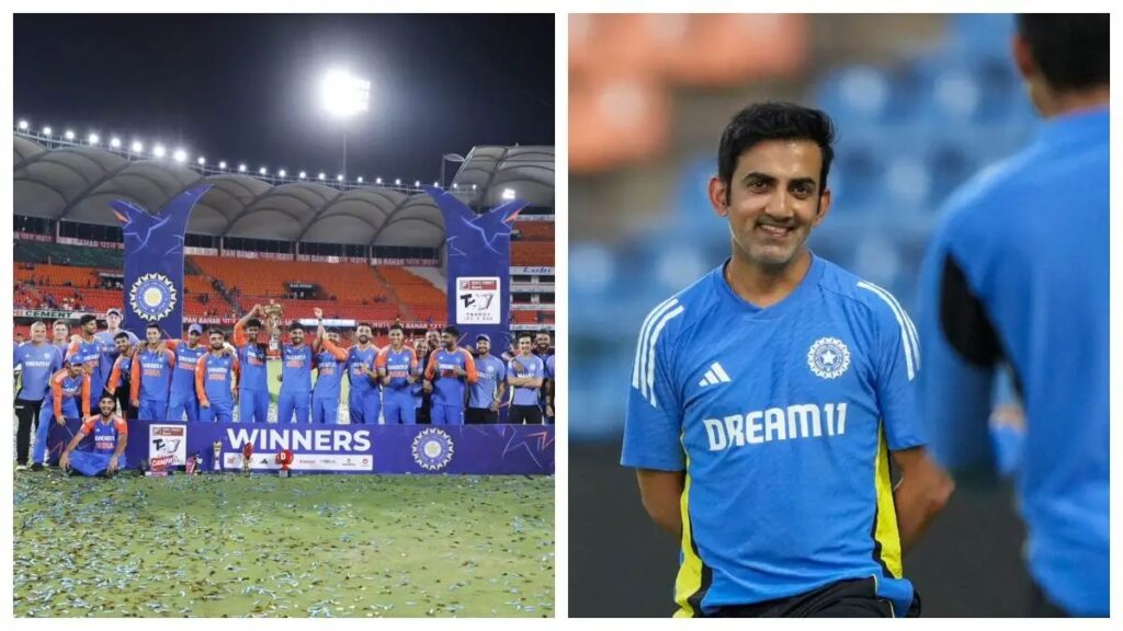 सूर्यकुमार यादव की अगुआई वाली टीम इंडिया ने हैदराबाद में बंगलादेश को 133 रनों से हराकर सीरीज में 3-0 से व्हाइटवॉश कर लिया है। वही इस मैच में संजू सेमसन के शतक के दम पर पहले खेलते हुए 297 रनों का स्कोर बनाया है जिसके जवाब में बांग्लादेश की टीम 164 रन ही बना सकी और यह मैच 133 रनों से हार गई। इस एकतरफा हार के बाद टीम के हेड कोच गौतम गंभीर ने टीम की जमकर तारीफ की है। उन्होंने सोशल मीडिया पर सीरीज जीतने वाली टीम की ट्रॉफी के साथ एक तस्वीर शेयर की है। इसके कैप्शन में गंभीर ने कहा, ‘एक शानदार यात्रा।’ उनका यह ट्वीट सोशल मीडिया पर काफी वायरल हो रहा है।