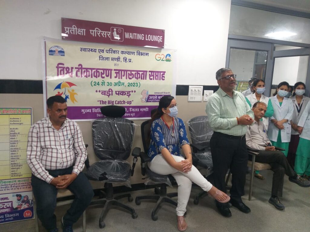 Himachal News: स्वास्थ्य एवं परिवार कल्याण विभाग जिला मंडी द्वारा जिला स्तरीय विश्व टीकाकरण सप्ताह के उपलक्ष में जागरूकता शिविर का आयोजन मातृ शिशु केन्द्र नेता जी सुभाषचंद्र क्षेत्रीय अस्पताल मंडी में आयोजित किया गया।