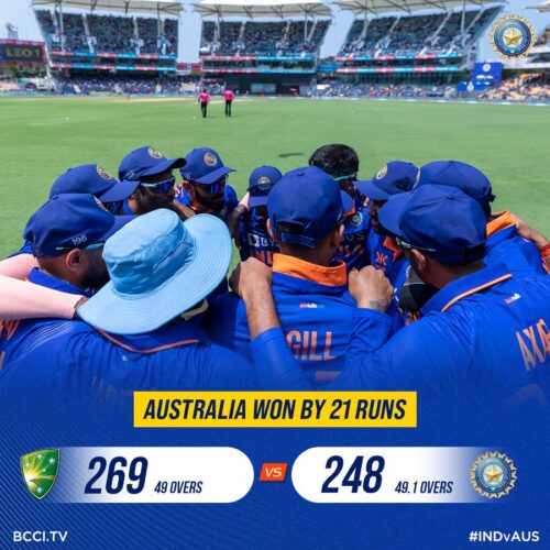 India Vs Australia 3rd ODI : बुधवार (22 मार्च) को चेन्नई के एमए चिदंबरम स्टेडियम में ऑस्ट्रेलिया के खिलाफ तीसरे एकदिवसीय मैच में 21 रन की हार के बाद टीम इंडिया एक दुर्लभ एकदिवसीय श्रृंखला हार गई। इस हार के साथ ही भारत ने तीन मैचों की वनडे सीरीज 2-1 से स्टीव स्मिथ की ऑस्ट्रेलियाई टीम के हाथों गंवा दी।जीत के लिए 270 रनों का पीछा करने में विफल रहने के बाद भारत के कप्तान रोहित शर्मा ने भारत के बल्लेबाजों पर कड़ा प्रहार किया, 248 रन पर आउट हो गए, जिसमें ऑस्ट्रेलियाई लेग स्पिनर एडम ज़म्पा ने चार विकेट लिए। भारत चार साल बाद घर में एक द्विपक्षीय एकदिवसीय श्रृंखला हार गया और यह एरोन फिंच के नेतृत्व में ऑस्ट्रेलिया था जिसने 2019 में विराट कोहली की टीम को पीछे छोड़ दिया था।