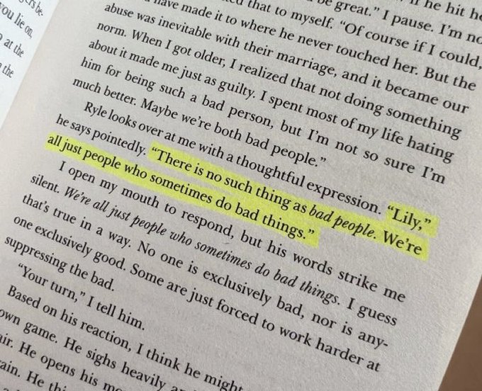 Ryle वापस आते हैं, Lily और वह उसके साथ संधि करती हैं और उसे अपने गर्भ के अंतिम महीनों में मदद करने की अनुमति देती हैं, लेकिन उससे भावनात्मक रूप से दूर रहती हैं. बाद में Lily एक बेटी को जन्म देती है, जिसका नाम वह Ryle के मृतक भाई के नाम पर रखती है. जन्म देने के बाद, Lily को यह महसूस होता है कि वह नहीं चाहती है कि उसकी बेटी Ryle की क्रूरतापूर्ण उमड़ते हुए अंदाज़ को देखे, और उसे तलाक चाहिए कहती है. वह रोते हुए उससे विनती करता है कि वह दोबारा विचार करें, लेकिन अंततः वह उसकी दृष्टि को समझता है और उसे अलग होने के लिए सहमत हो जाता है जब उससे पूछती है कि यदि उनकी बेटी उसे बताए कि उसके साथी द्वारा उसे हिंसा की जा रही है, तो वह कैसे प्रतिक्रिया करेंगे. लिली की उम्मीद होती है कि वह अंततः अपने परिवार में हिंसा का चक्र खत्म कर देगी, अपनी बेटी से कहते हुए, “यह हमारे साथ समाप्त होता है.” एपिलॉग में, Lily, जो Ryle के साथ संयुक्त पालन कर रही हैं, Atlas को ढूंढ़ती है और उसे बताती है कि वह उसके साथ अपने संबंध को दोबारा शुरू करने के लिए तैयार है.